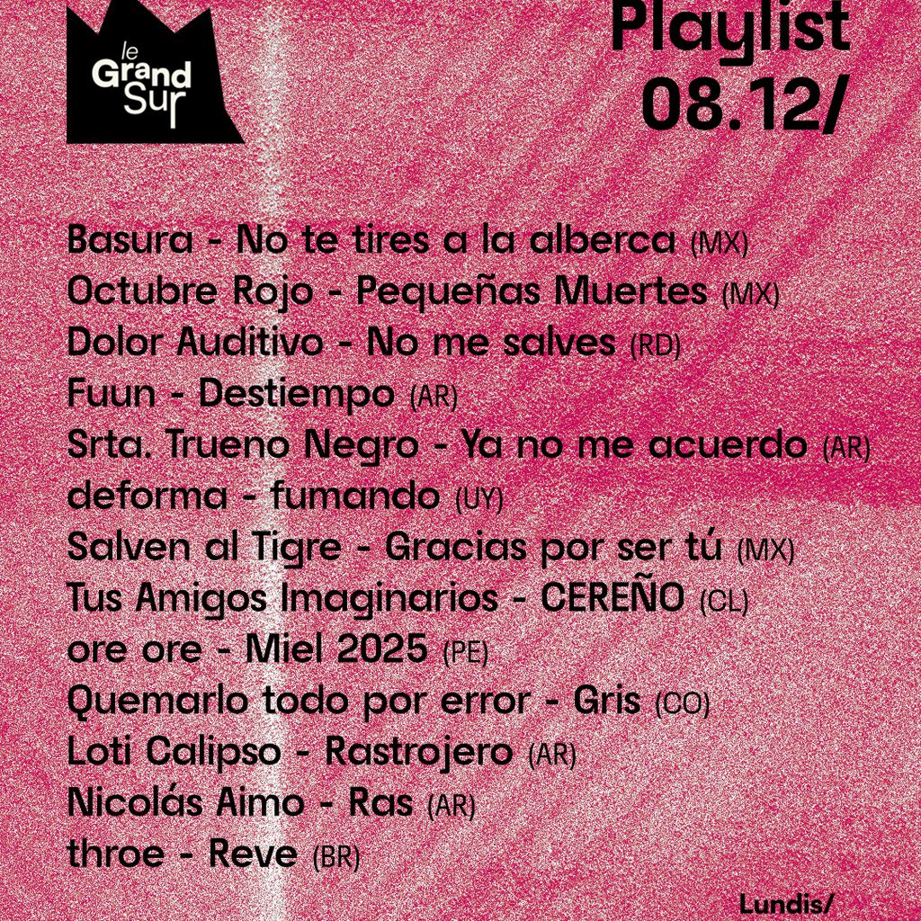 Le Grand Sur explore l'état actuel du rock indépendant sud-américain. Dans cet épisode, nous entendrons: Basura, Octubre rojo, Dolor Auditivo, Fuun, Srta Trueno Negro, deforma, Salven al Tigre, ore ore, Quemar todo por error, Loti Calipso, Nicolás Aimo, throe